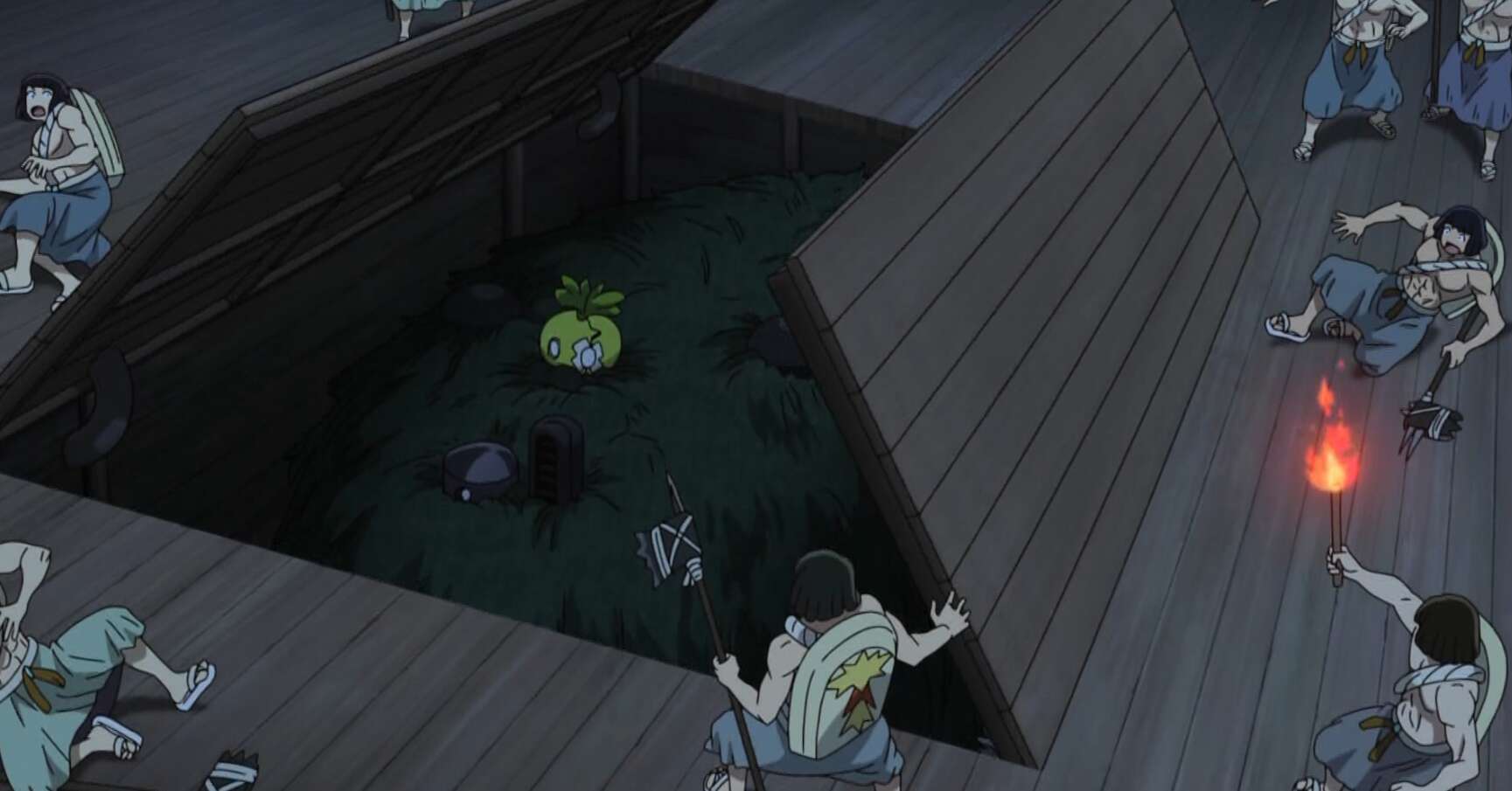 コハクは、銀狼はやる時はやる男だ、と信じますが、銀狼はスイカがいると分かると、スイカに人任せにして、船から脱出しようとします。しかし、金狼だけは助けようと、金狼の石像を持って逃げようとします。その時、スイカが騒ぎを起こしラボカーを脱出させやすくします。