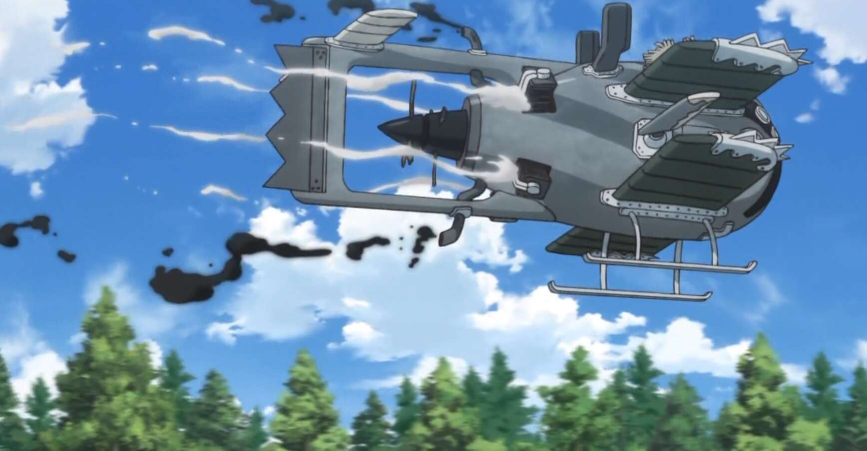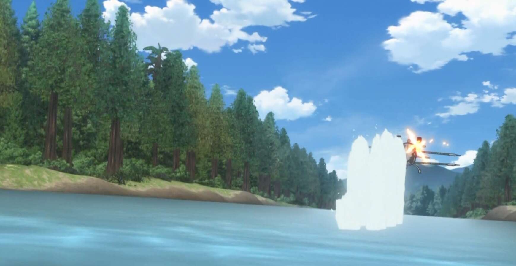 キリサメはカルシウムカーバイドの入った袋を飛行機に対して投擲、カルシウムカーバイドから生じた気体を吸い込んだ飛行機のエンジンはノッキングを起こし墜落します。