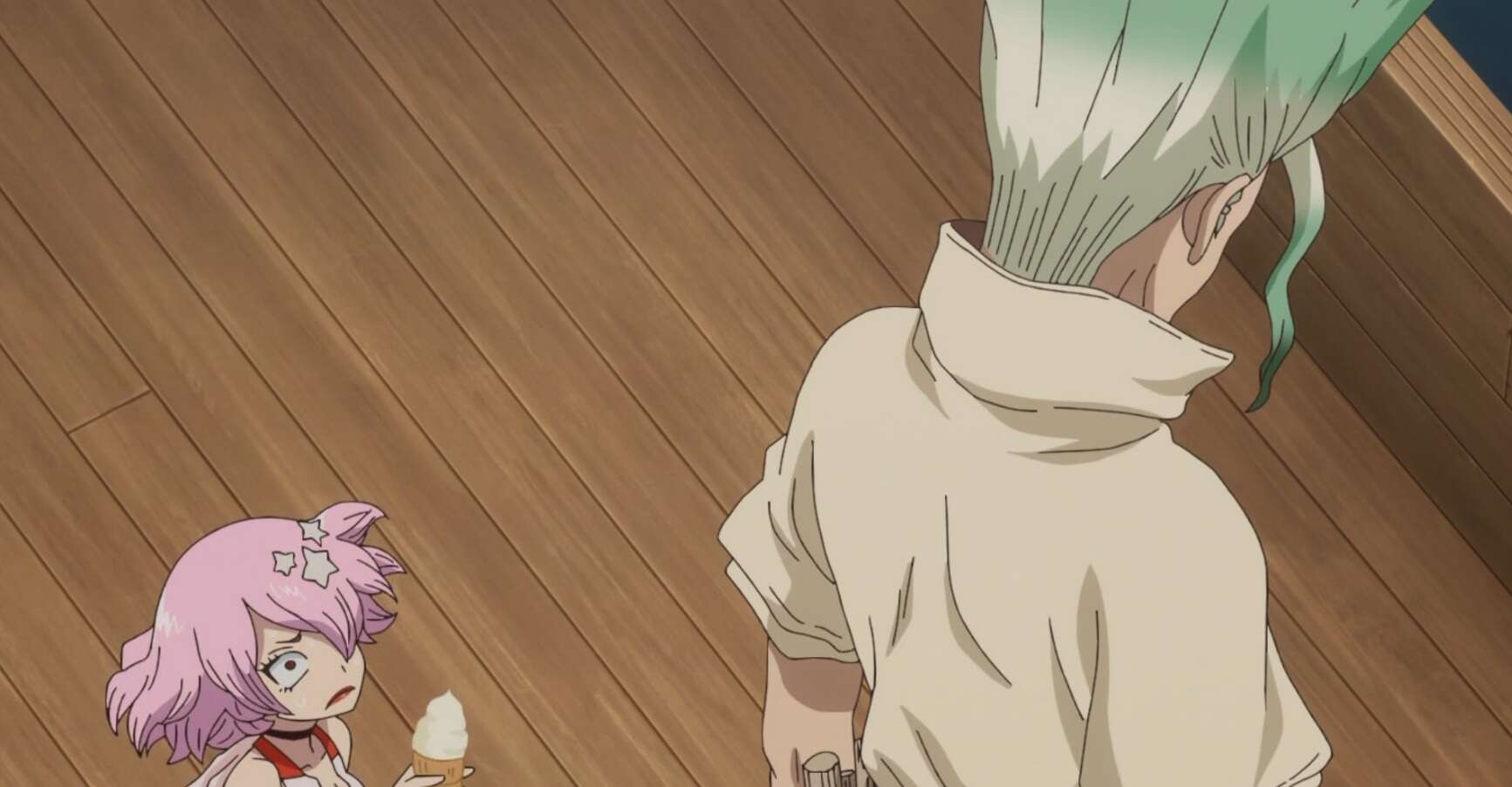 フランソワからはバー・フランソワを使うように言われ、龍水は世界で一番嫌いな奴などいない食べ物・アイスクリームでルーナをもてなそうと千空にアドバイスします。