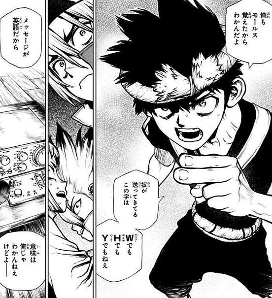 ニューペルセウス号で大西洋に航海に出た千空達は、月から再び電波が届いていることに気付きます。モールス信号で超合金の街やコーンの街にいる仲間と、頻繁に連絡を取り合っていたから、とクロムは推測します。月からの電波の内容は今までのように“WHY”ではなく、新しいメッセージ“DO YOU WANNA DIE”(死にたいのか)というものでした。