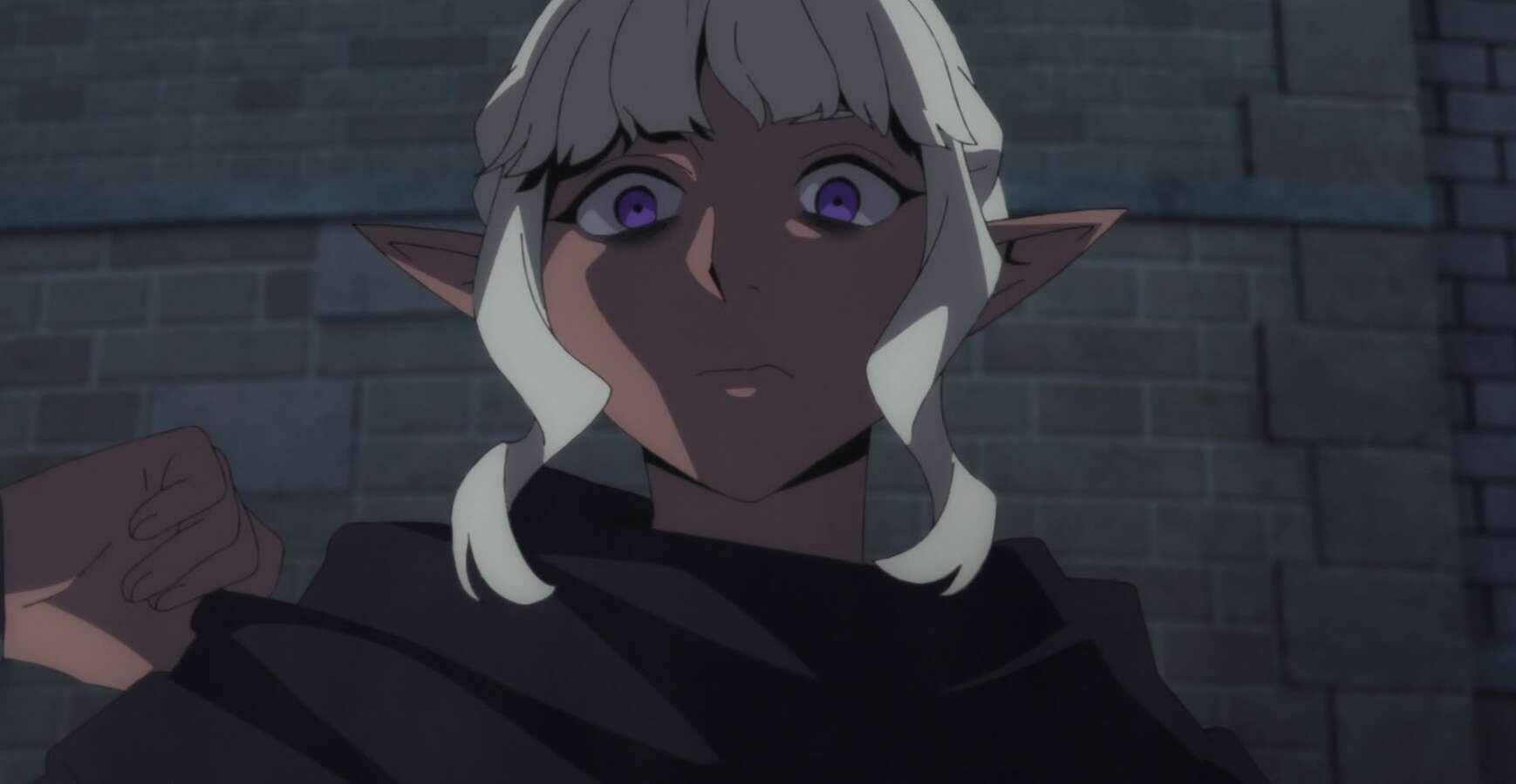 先週の回想の中でのファリンの意味深な言葉で変なフラグが立ったのかと思いましたが、ファリンは無事、蘇生されて精神や記憶も大丈夫そうです。このまま、地上に戻って大円団の流れかと思いましたが、最後に怪しいエルフが現れます。このエルフですが、褐色の肌と銀髪の姿で気付いた方もいると思いますが、第6話でライオスが絵画の中で遭遇したエルフと同一人物で、狂乱の魔術師でもあります。