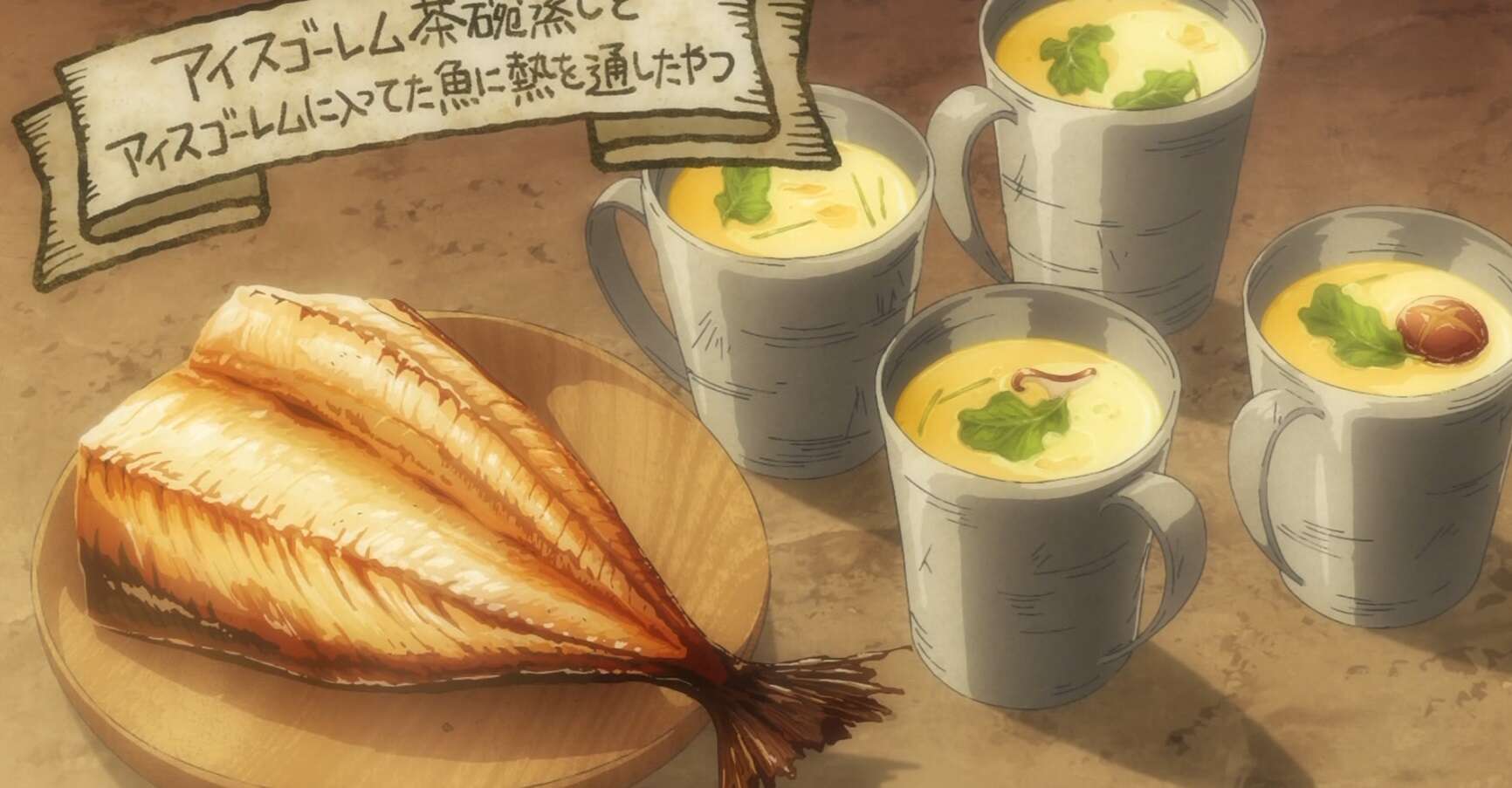 茶わん蒸しと魚料理が完成し、イヅツミはアイスゴーレムを仕留めた自分が一番に食べる権利があると真っ先に食べようとします。しかしセンシに、勝手に食べはじめてはいかん、と怒られてしまいます。皆が食卓に着くまで待ちなさいとイヅツミは怒られますが、協調性に難があり自由気ままな性格のイヅツミは時間の無駄だとイライラします。