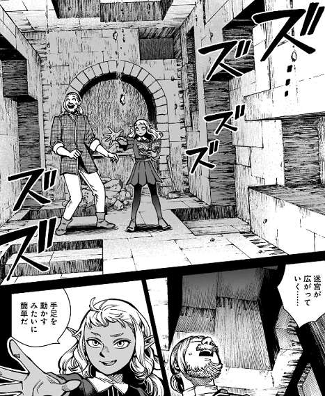 シスルは地下迷宮を降りながら、古代魔術の説明をデルガルにします。この城の地下に眠る“迷宮”の主になれば、空を飛んだり、黄金を生んだり、死者の蘇生すら思いのままだと言い、迷宮の中では魔力がほぼ無限に引き出せると説明します。シスルはこの迷宮に長い間、閉じこもって色々調べまわっていてようです。