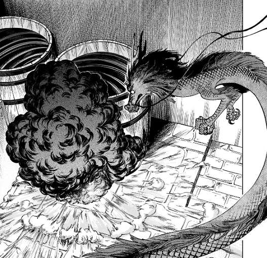竜達は好き勝手にしていて、グリーンドラゴンは純銀のスプーンで遊び始める始末です。そんな竜達を見て、シスルは竜達を怒ります。そしてライオスを殺すように命令し、再びライオスを襲わせます。