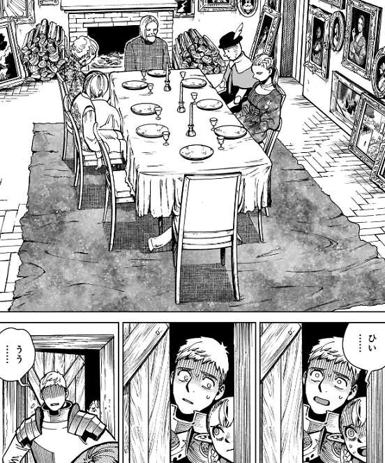 ライオス、センシ、チルチャックが殺され、イヅツミとははぐれたマルシルは、一人で迷宮の兎に立ち向かい事になります。しかし、マルシルが戦っても大怪我をしてしまうのでしかたなく、マルシルは魔術でチルチャックの身体を動かすことにします。死体を魔術で動かすネクロマンシーは犯罪と分かっていますが、今は仕方ないとマルシルは自分に言い聞かせ、チルチャックを迷宮の兎に突っ込ませます。