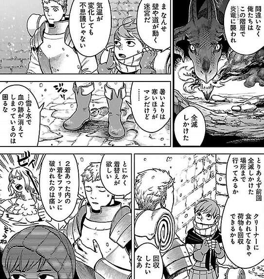 またマルシルの悪夢の回では、マルシルの過去のトラウムが明らかになり、このトラウマが迷宮に行こうとマルシルを決心させた一因になっています。この辺りの話は、最新話の方で少し語られているので、多分10巻辺りで収録されると思うので、興味のある方はその内確認してみて下さい。