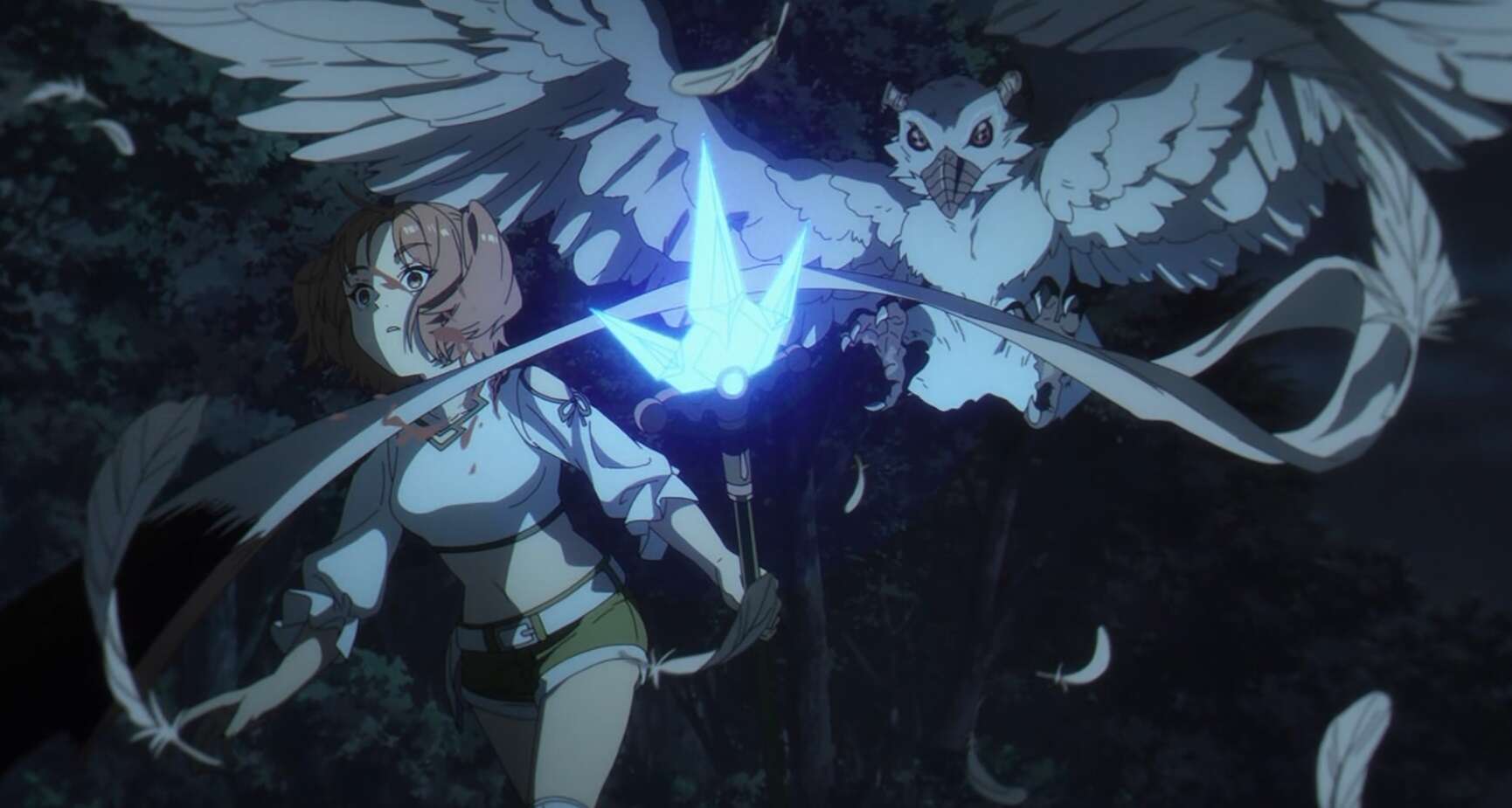 一方、グラナト伯爵では魔法使いの女性が盗賊に襲われていました。盗賊は金目の物を女性から奪おうとしますが、第11話で別れたエルフのクラフトが割って入り盗賊を撃退します。魔法使いの女性はユーベルと名乗りクラフトにお礼を言いますが、クラフトはお前を助けたわけでないと言い、人殺しの目をしているとユーベルに言います。ユーベルも一級魔法使い試験を受けるのが目的で、クラフトと別れた後オイサーストを目指します。