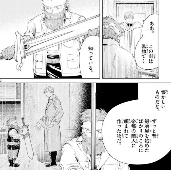 第25話で勇者の剣に関するエピソードがあり、ヒンメルは勇者の剣を抜くことが出来ず、偽物の剣を持っていたというお話がありましたが、今回その偽物、レプリカの剣を作ったドワーフに会います。