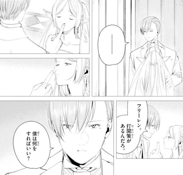 しかしフリーレンは、私には出来なくても、ヒンメルには出来る、と言いヒンメルの手を剣のある場所へと移動させます。ヒンメルも剣の感触はもう分っているようで、現実世界でも体を動かせると自信を見せます。
