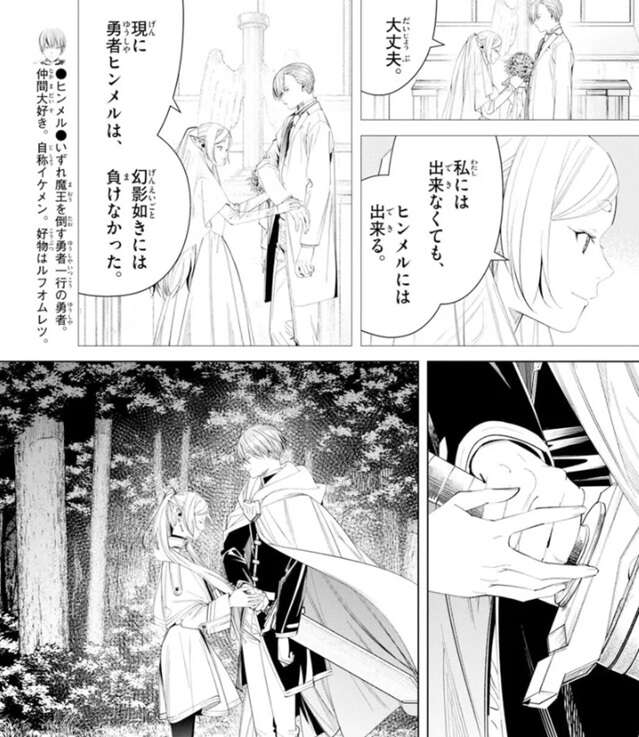 フリーレンはヒンメルに礼を言い、石碑に向かって走り出します。ヒンメルも、いいってことさ、お蔭でとても良い夢が見れた、と言い、フリーレンが石碑にたどり着けるように援護します。そして、フリーレンは石碑にたどり着き、フィアラトールと唱えます。