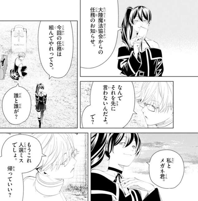 ただ、ラントの祖母は死期を悟った割には元気だったようで、ラントは面倒を見てるどころか見てもらっていて、結局祖母は孫のラントと一緒にいたかっただけなんだろう、とラントは考えます。そんなことを考えているうちに祖母はあっさり死んでしまいますが、それから5年間ラントはこの村を離れられずにいました。ラントは、一緒にいたいと思っていたのは、祖母でなく僕だったのかもしれない、とユーベルに祖母との事を教えます。その後、なんの用でここまで来たのか教えるようにユーベルに言います。ユーベルが殺しに来たっていうのなら僕は今から全力で逃げないといけなくなる、とラントはユーベルに言うと、やっと大陸魔法協会の任務で来たことをラントに告げます。