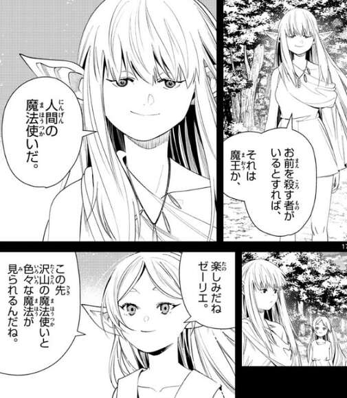 そしてゼーリエは、これから先は時代が加速するぞ、たった千年だ、たった千年で人間の時代がやってくる、とフリーレン言います。エルフは人間に追い抜かれる、と言い、フリーレンに鍛錬を怠らないように忠告します。