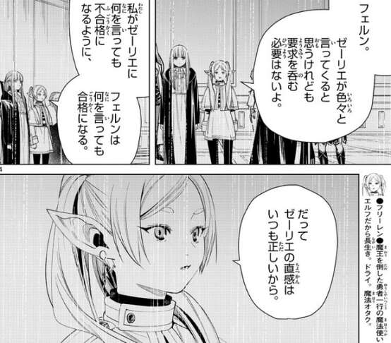 ゼーリエはフリーレンの入れ知恵だと気付きますが、有望な魔法使いを見逃すほど馬鹿じゃない、と言い、フェルンに合格だと言います。