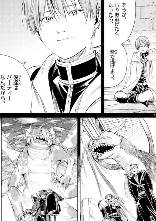ヒンメルと旅をしていた時の事、何故お前はオレに命を預けるなんて言えるんだ?俺は村を捨てて逃げた男だ、とアイゼンがヒンメルに聞いています。すると、じゃあ逃げたくなったら、皆で逃げよう、僕達はパーティーなんだから、とヒンメルは答えます。その言葉通り、途中でドラゴンに遭遇した時、ヒンメルの勇者一行は、全員で逃げています。そして現在、フリーレン、フェルン、シュタルクの三人も、全員で毒極竜から逃げています。