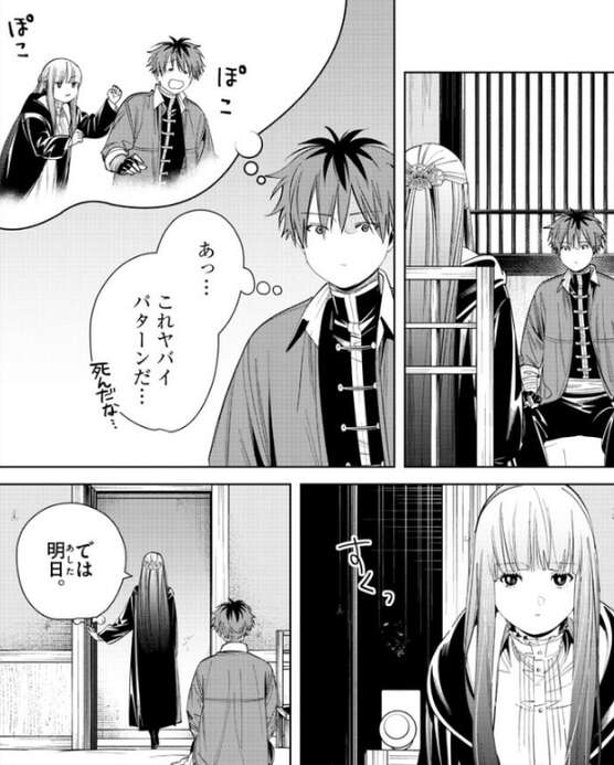 シュタルクは、フェルンにまたぽこぽこと殴られて怒られることを覚悟しますが、……わかりました、では明日、とフェルンは返事をすると本も拾わず、そのまま部屋を出て行ってしまいます。シュタルクはフェルンの意外な反応に、フェルンが怒っているのかとビビってしまい、フリーレンにこの事を相談します。