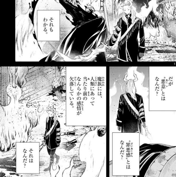 しかし、“悪意”や“罪悪感”がどんなものか分からず、魔族には人類にあって当たり前の何らかの感情が欠落していると考えます。そして、マハトは初めて人類に興味を持ちます。