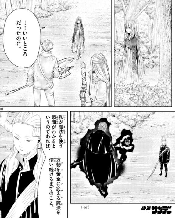 しかしデンケンは黄金に変えられてしまい、何もできなくなってしまいます。さらに遠く離れた場所では、フリーレンと避難していた集落の人々が黄金に変えられてしまっています。