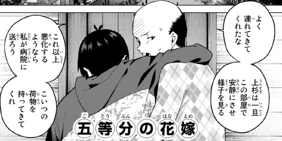 風太郎経由で金太郎と会えない形になりました。体調の悪い風太郎はそんな中でも二乃に気を使います。
