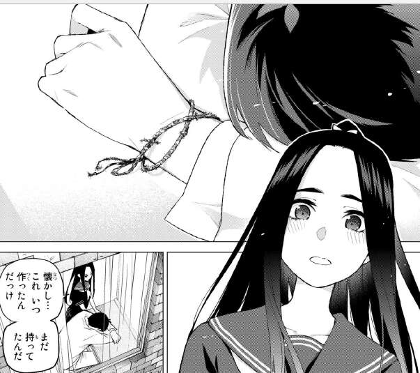 らいはが冒頭から大人です。しかしキャンプファイヤーの結びの瞬間は五つ子の誰かは、以前不明です。結びの伝説の条件は全員で風太郎の手を握っていることから、全員満たしているので、まだまだどうなるかは分かりませんね。