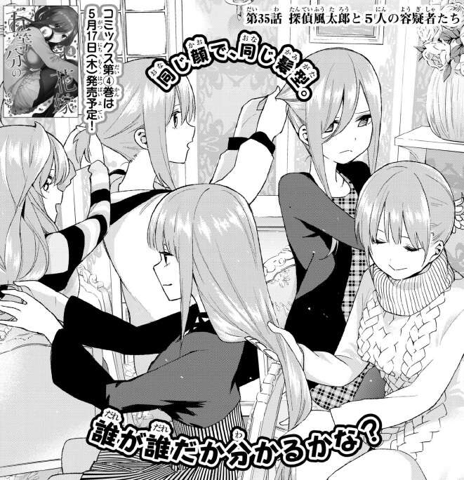 第35話です。この並びは一花、二乃、五月、四葉、三玖の順でしょうか?