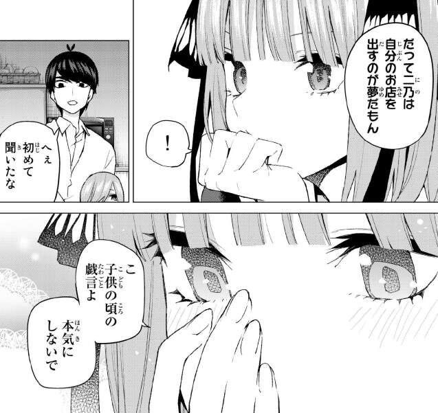 ここで二乃は自分のお店を出すのが夢だと、二乃の夢が判明します。