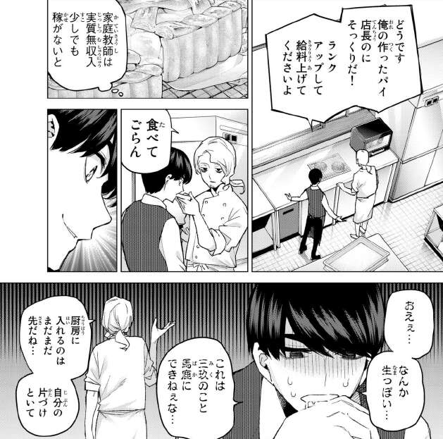 アルバイト先で給料、ランクアップの為にパイを作りましたが風太郎は三玖並みに、調理の才能が無いようです。