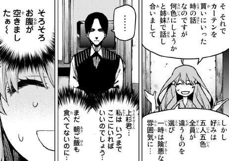早速偽五月を特定すべく、五月以外の五つ子たちに質問を始めますが、早速風太郎は全然 違いが分からず、三人目には質問内容を怒られるありさまです。