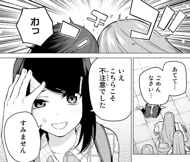 四葉は勇気を振り絞って風太郎は無罪だと主張し、女性と警察の誤解を解こうとします。