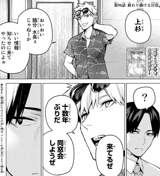 前回 97話の記事はこちらです。パンケーキかたこ焼きかで、クラス内で対立が起き二乃は一部女子から恨みを買ってしまいます。