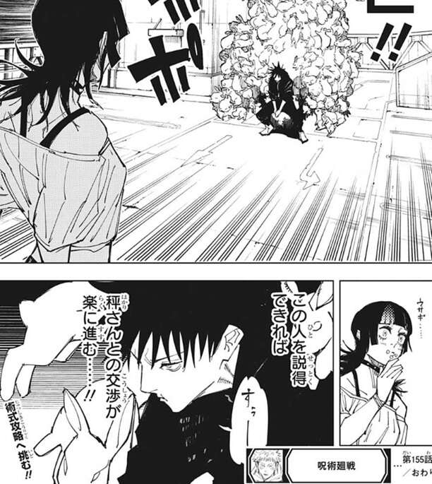 しかし星綺羅羅が秤に一番近い人で、星綺羅羅を説得できれば、秤との交渉も楽に進むと伏黒は考え、脱兎を大量に呼び出し星綺羅羅の術式を攻略しようと考えます。