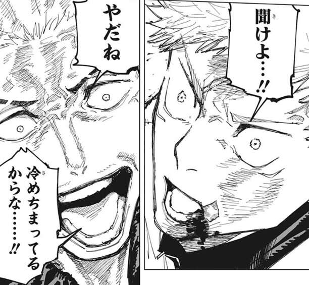不信感を示す虎杖に、これは典型的な詐欺だと言い、普通に考えれば分かる事だが騙されるアホはアホ程いる、それは全て“熱”のせいさ、と秤は説明します。騙す側も騙される側も、「ここで人生を変えてやろう」って“熱”を持っていて、秤はその“熱”を愛していると言います。