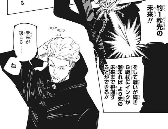 この術式によってシャルルは約1秒先の未来が視えていて、さらに戦いが続きG戦杖のインクが溜まれば、より先の未来まで視通すことが出来る、とシャルルは言います。