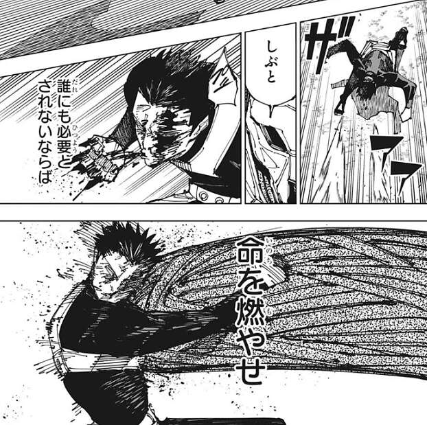 しかし、穿血は直哉にはあまり効かなかったようで、体当たりでさらに加茂憲紀を攻撃します。傷がどんどん増えていき、加茂憲紀は今にも死んでしまいそうな状態になっていきますが、誰にも必要とされないならば命を燃やせ、と加茂憲紀は自分に言い聞かせるように頭の中でつぶやくと、直哉への攻撃を続けます。