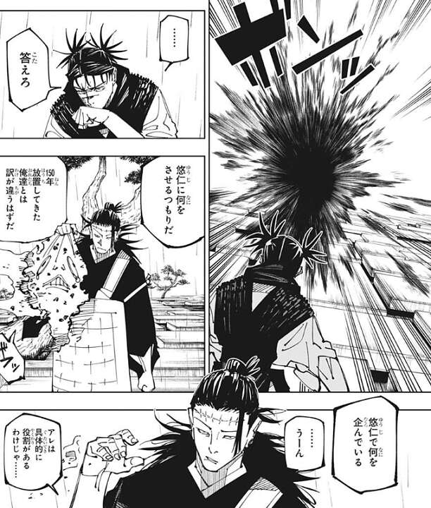 前回の記事はこちらです。羂索が薨星宮に現れ、脹相は羂索と対峙します。