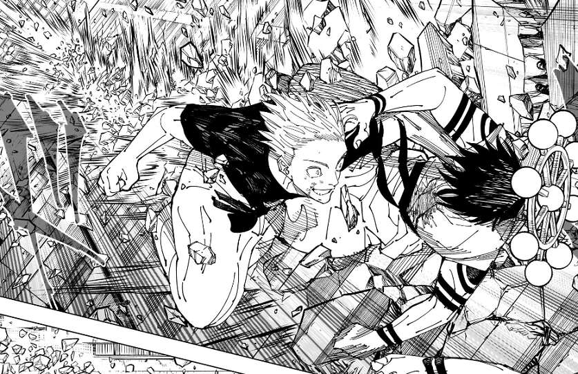 そして、3カウントなんて待たずにぶっ殺してやるよ、と五条は宿儺に言い放つと、宿儺は余裕があるのか笑みを浮かべます。あの人恵のこと忘れてませんよね?と、来栖が心配そうに虎杖に質問し、……多分、と虎杖は自信なさげに答えます。………いいんだよ忘れて、と鹿紫雲一は言いますが、おそらく虎杖辺りが、よくねぇ!!と、ツッコミます。