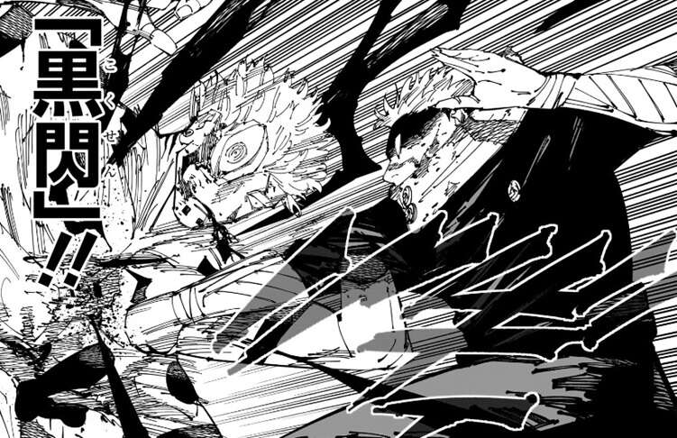 虎杖はそのまま宿儺にパンチを放ち、このパンチは黒閃となります。本日、虎杖にとって通算9度目の黒閃がきまります。
