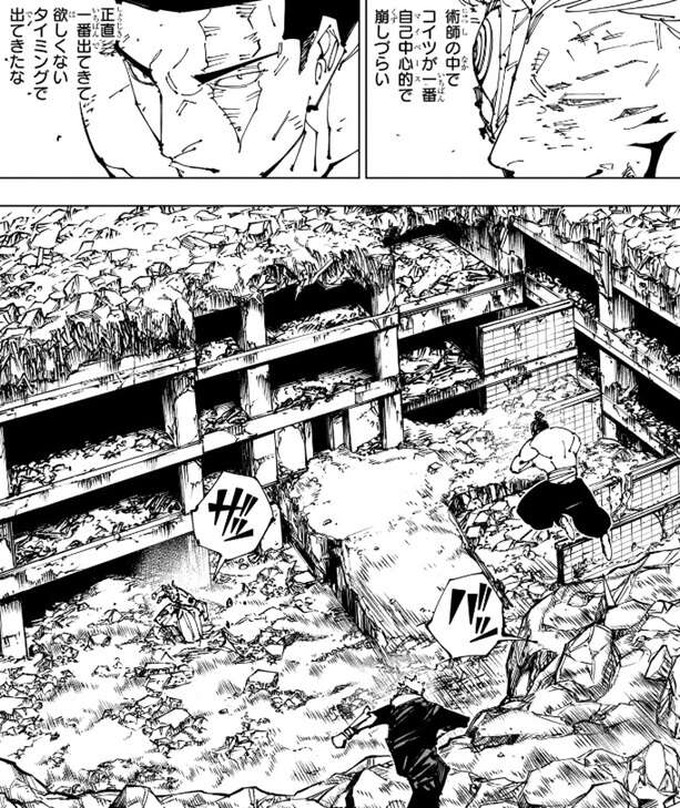宿儺は東堂を、術師の中でコイツが一番自己中心的(マイペース)で崩しづらい、正直一番出てきて欲しくないタイミングで出てきたな、と評価します。確かに、宿儺は東堂の「不義遊戯」改に対応できず苦戦し、入れ替わりが発生すると空中で跳んで移動し、わざと距離をあけます。