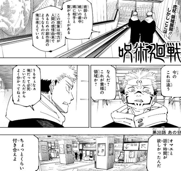 週刊少年ジャンプに掲載されている、呪術廻戦 第265話のネタバレ、感想です。