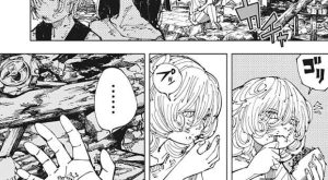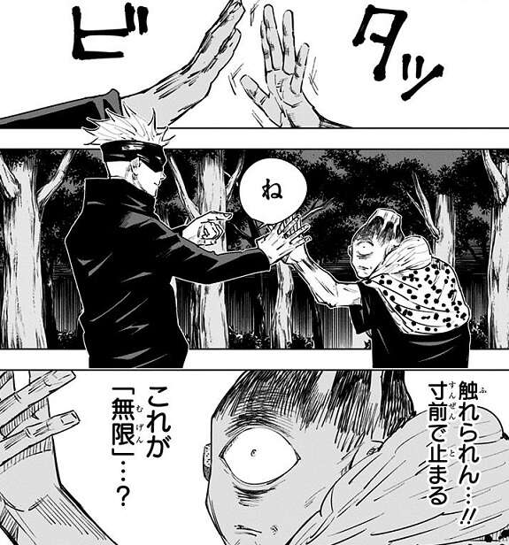 漏瑚は連続攻撃で五条を殺そうとしますが攻撃は全く当たらず、それどころか五条が作り出した「無限」によって五条に触れることすら出来ません。さらに五条の術式反転「赫」によって吹き飛ばされて、漏瑚は重傷を負います。