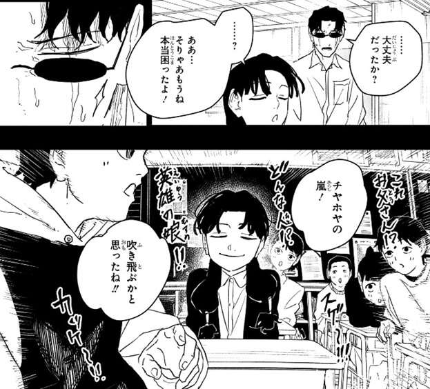 座村は道場の男に謝り、道場の男も子供の喧嘩という事で大事になる事も無く終わります。しかし、道場の他の男たちは何か言いたい事があるようで、不満そうな顔をします。そこに学校から電話があり、座村は学校まで娘を迎えに行きます。