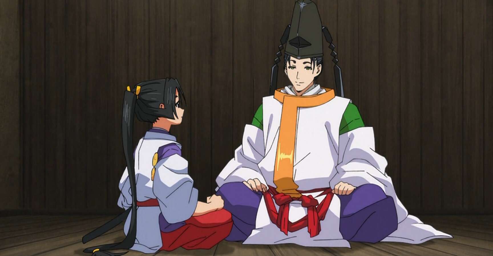 第十回では、頼重から一時的に失われた神力を取り戻すために時行は頼重の手伝いをしますが、郎党達が時行はド変態と誤解してしまい、時行はひどい目に遭います。最後は頼重に誤解を解いてもらい、頼重がド変態という事で決着しました。