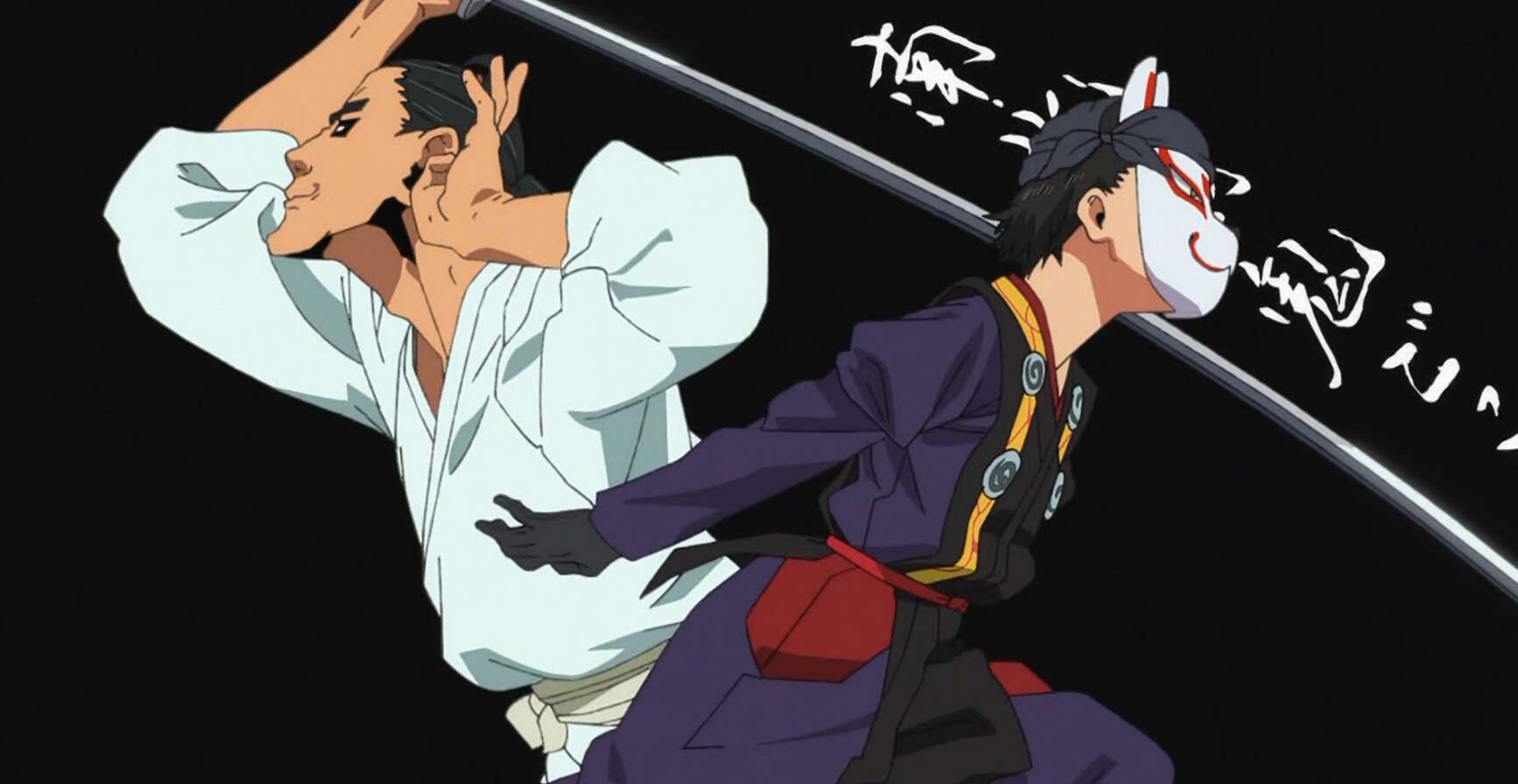 第六回では、綸旨を無事盗んだ玄蕃と時行が市河に見付かってしまい、玄蕃が刀で斬りつけられて、玄蕃を庇った時行が刀傷を負ってしまいます。玄蕃は時行に傷を負わせてしまった事に責任を感じ、追ってきた貞宗と市河に一人で対峙します。貞宗と市河は玄蕃を卑怯な技を使う盗人と侮りますが、玄蕃は忍者の技で二人を翻弄し、その隙に時行を仲間と合流させて逃がします。玄蕃は時行の一途さに触れて損得抜きで仕えたいと思うようになり、国一つの契約で逃若党に加わります。