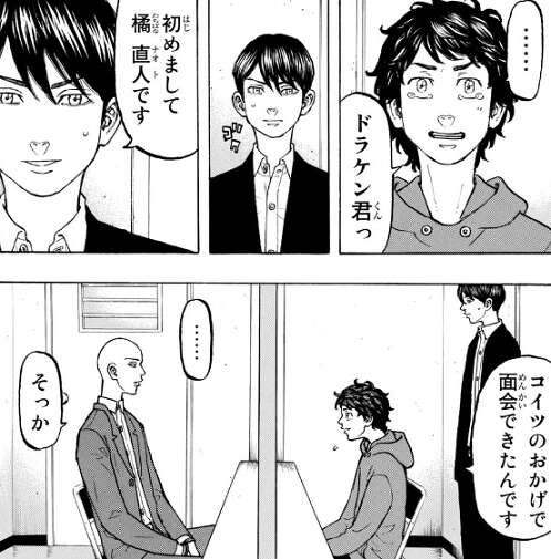 武道とナオトは現代のドラケンに会いに行きます。死を免れたドラケンは何故か刑務所に服役しています。ドラケンは殺人を犯していたのですが、それは稀咲鉄太の罠でした。ドラケンは武道に東京から離れろと助言し、暗にこのままだと稀咲に殺されると警告します。稀咲はマイキーの大事なものを全て奪いたいのだと言います。