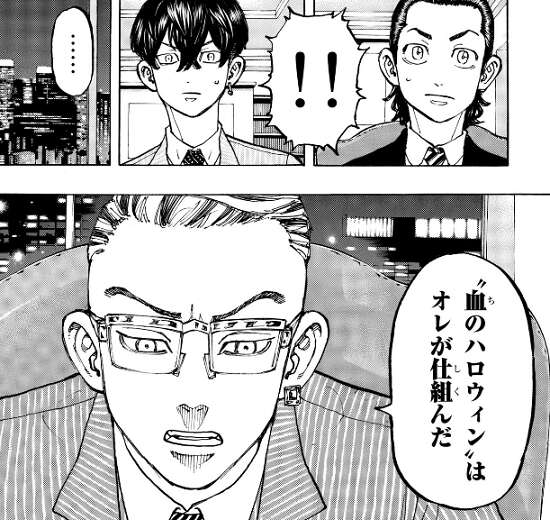 東卍の総長代理になっていた稀咲に、千冬と共に稀咲がオーナーの店に呼ばれた武道は、稀咲から場地が死んだのは自分のせいで、“血のハロウィン”も自分が仕組んだと自ら二人に告白します。芭流覇羅という組織を作った事、そして東卍に芭流覇羅をぶつけた事、称賛される功績が欲しくて必死だった事、場地が死ぬとは思わなかった事も稀咲は話し、その後千冬に頭を下げて謝罪をします。