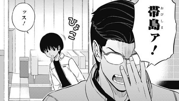 弓場から帯島と仲良くしてやってくれと言われ、おたがいがんばりましょうと握手を交わします。しかしその発言内容が弓場の逆鱗に触れ怒らせてしまいます。帯島は14才の女の子でした。