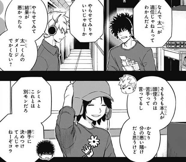 しかし、そんなネガティブな理由では特別課題はさせられない、そもそも本人が頭使うのは苦手って言てるし、かなり分の悪い賭けだと思うけど、と犬飼はかなりストレートに言ってしまいます。影浦はやらせてみればいい、勝手に決めつけるな、と言って犬飼と言い合いをしてしまいます。結局、隊長の柿崎の犬飼が一番向いてそうだという判断で、特別課題は犬飼が担当することになりますが、別役はすっかりヒネてしまいます。