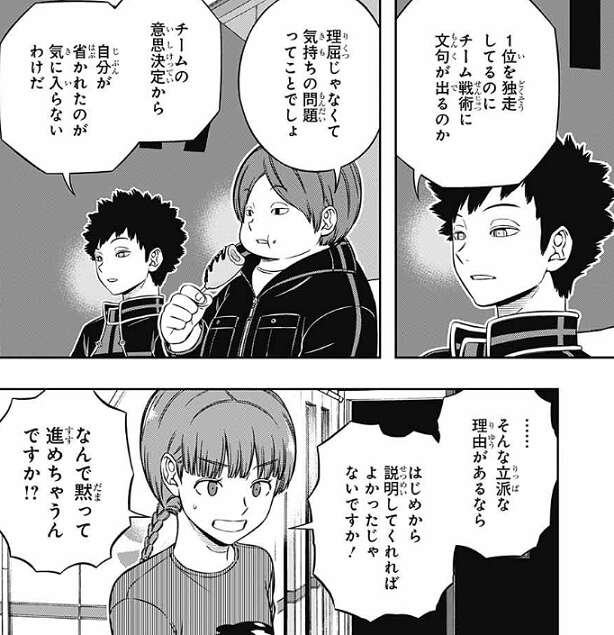 それでも樫尾は王子隊でなれているのか、ルールの確認からでしょうか?と、戦闘シミュに取り組もうとし、荒船もソフトのダウンロードからだな、と指示しますが、照屋は納得できずに、色々おかしいと言い、戦闘シミュに取り組む気になりません。